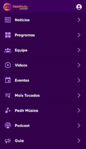 Site e AplicativoInformações do SitePreencha os campos com as informações necessárias para o seu siteDomínioTítulo do SiteLogotipo do site com fundo transparente (arquivo PNG)Enviar a imagem Cor primária do siteCor secundária do siteEmailTelefoneWhatsAppURL do InstagramURL do FacebookURL do canal do YouTubePáginas e seções do site Contato Quem Somos Notícias (cada notícia deve ser adicionada manualmente) Vídeos Programas Grade de Programação EquipeQuem SomosInformações do AplicativoPreencha os campos com as informações necessárias para o aplicativoTítulo do AppLogotipo do app com fundo transparente (arquivo PNG)Enviar a imagem Cor primária do appCor secundária do appHomeElementos no início do app Carrossel de banners Web TV Notícias Vídeos Programas Grade de Programação Equipe Eventos / Agenda Doação (Web Igreja) Bíblia (Web Igreja) Pedido de Oração (Web Igreja)NavegaçãoAlém dos itens Início e Mais, escolha mais 3 itens para serem adicionados na navegação.Barra de navegação do appEscolha 3 itensTVRádioVídeosNotíciasProgramaçãoRecadosEventos / AgendaBíbliaVídeos a serem exibidos no app Automaticamente de um canal ou playlist do YouTube Adicionados manualmente pelo site Sem vídeosMaisElementos na opção Mais Fale Conosco Nossas Páginas Localização Quem Somos Notícias Programas Equipe / Diretoria Grade de Programação Vídeos Top Músicas Podcast (Áudios) Eventos / Agenda Guia Comercial Recados Downloads (Leitor de PDF) Doação Bíblia Igrejas Ministérios Missões Estudos Bíblicos Devocionais Pequenos Grupos Pedido de OraçãoEnviar